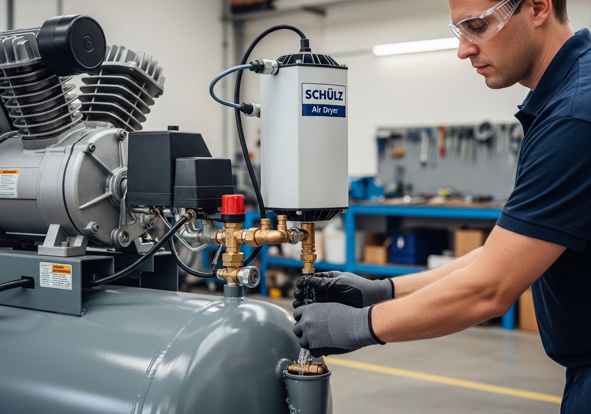 Moisture buildup is a common issue, leading to rust, corrosion, and reduced air tool performance. Regularly drain the compressor tank to remove accumulated water. Installing an air dryer can further mitigate moisture problems, especially in humid environments. As a Schulz Authorized Dealer, we recommend Schulz air dryers for optimal moisture control.
